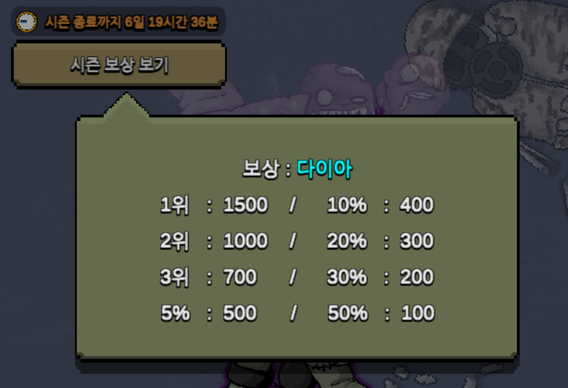 50%안에 들지 않으면 아예 보상도 없다는 점. 10% 안에 들어야 1주일에 400개 보석을 얻을 수 있죠. 그다지 효율적이라 생각 들지 않는 콘텐츠인 듯합니다.