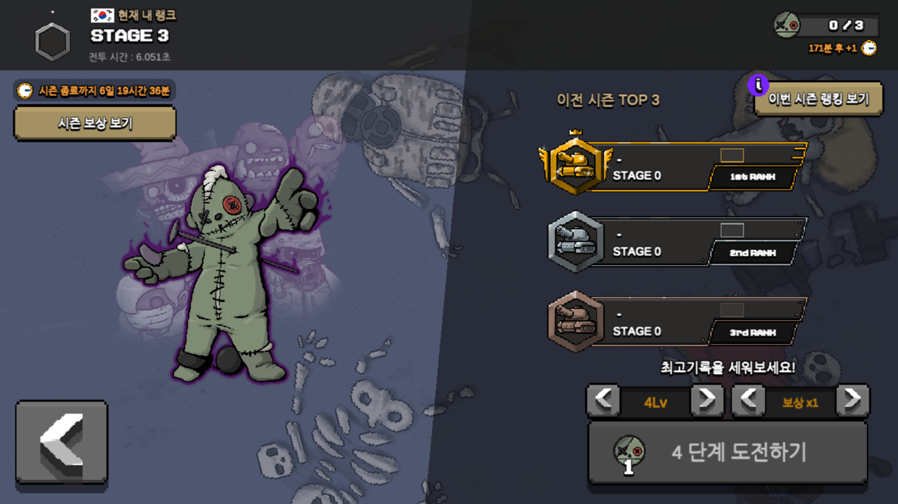 일단 새롭게 업데이트된 부품들에 대해 살펴보았고 추가적으로 생긴 랭킹존에 대해 알아봅시다. 모든 플레이들이 랭킹시스템에 도전을 할 수 있는데 진행방식은 간단합니다. 레벨별 스테이지에 나오는 보스를 처치하면 그에 따른 점수가 올라가며 나의 순위에 따라 보상을 받으실 수 있는데 보상이 무려 보석입니다. 안 그래도 보석 수급이 어려운 게임인데 일주일마다 한 번씩 보상을 받을 수 있다는 이점은 정말 좋은 업데이트라고 생각되지 않네요. 응??