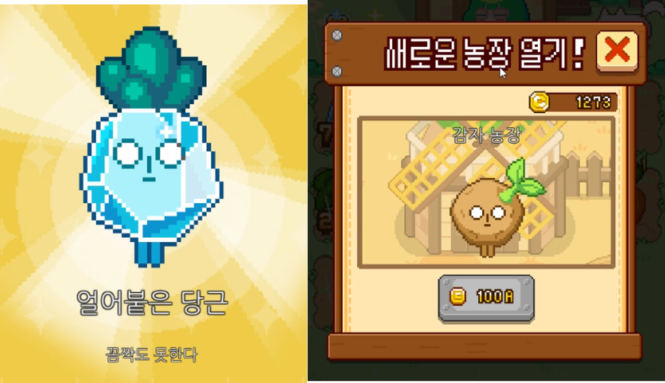 얼어붙은 당근까지 만들면서 슬슬 새로운 농장을 오픈하라고 합니다. 새로운 농장은 바로 감자농장인데 100A를 통해 오픈할 수 있다고 해서 열어봤습니다. 그런데!! 12시간을 기다리라니!! 감자농장에 대해서는 다음 포스팅에서 볼 수 있을 듯 합니다.