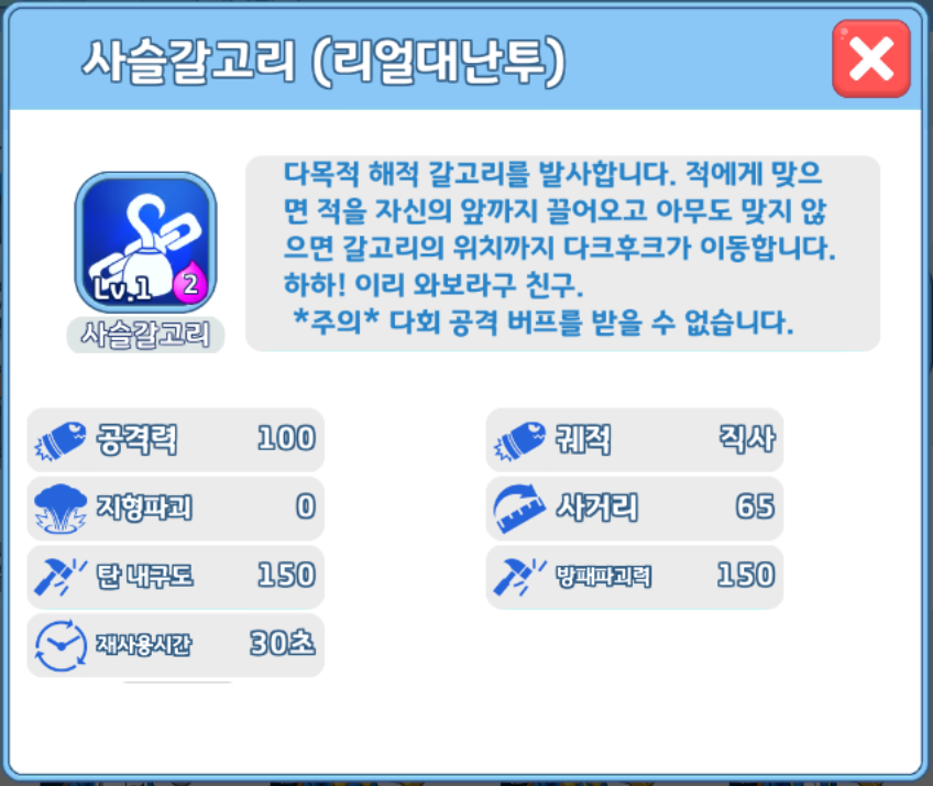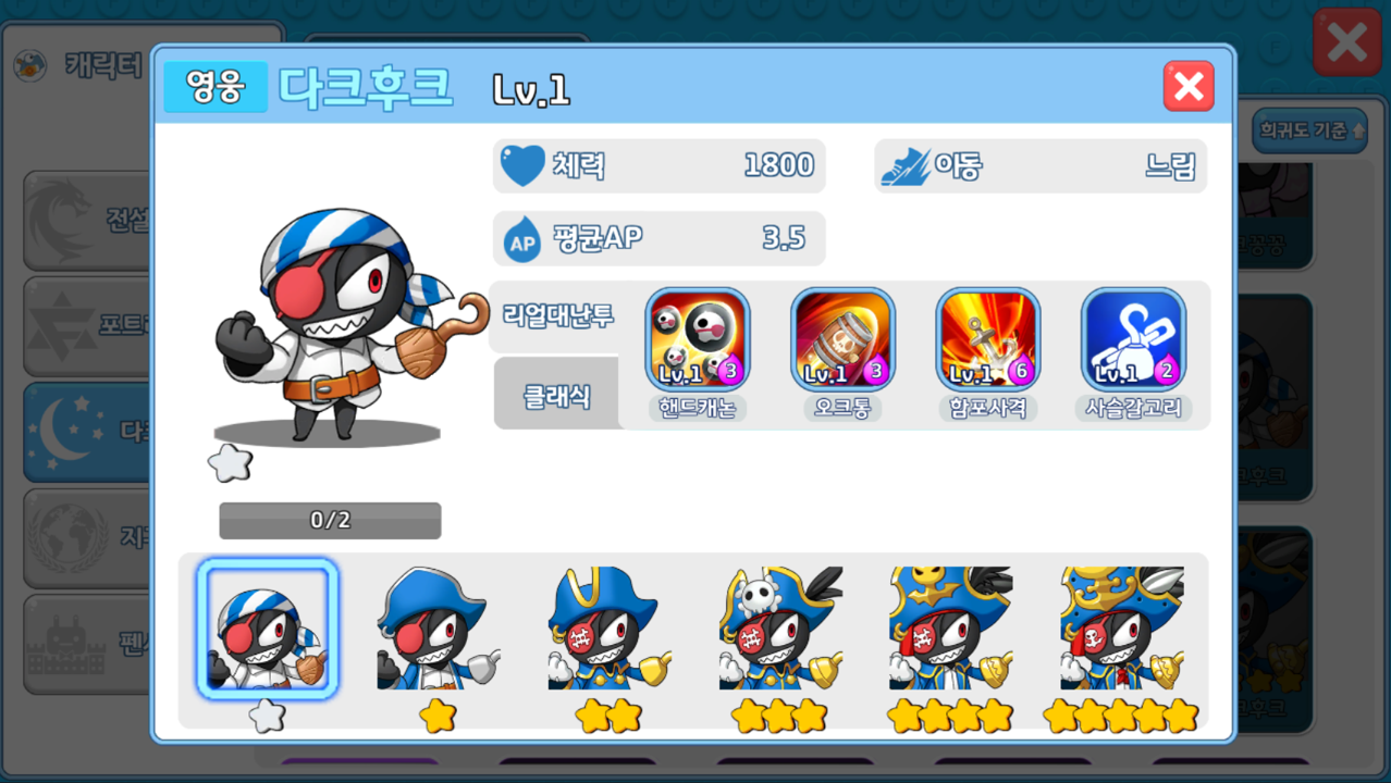영웅 등급 다크 제국에 포함되어 있는 다크후크는 1 레벨 체력 1800에 이동속도는 느린 편입니다. 하지만 지금부터 소개드릴 스킬이 아주 사기적이기 때문에 함께 살펴보도록 합시다.