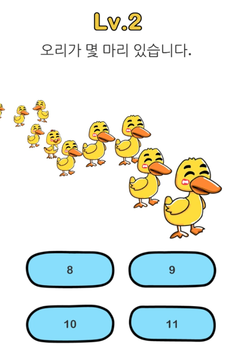 두 번째 문제는 오리가 몇 마리 있습니다. 다 똑같이 생긴 오리들인데 한 마리만 다르게 생겼네요.