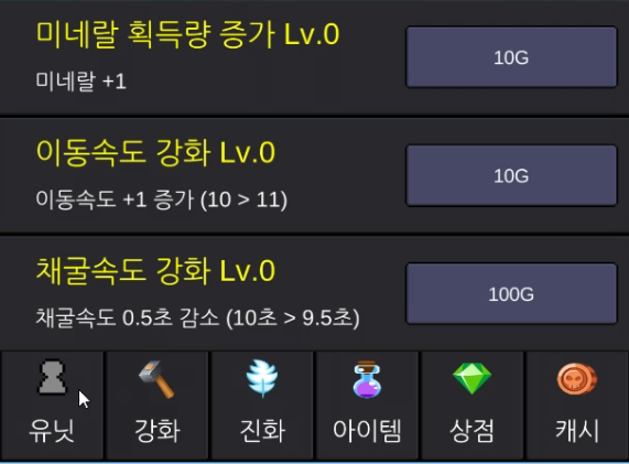 기본적으로 SCV는 자동으로 미네랄을 채취하는데 기본적으로 8원을 얻게 됩니다. 하지만 이게임은 키우는 것이기 때문에 강화를 가보면 미네랄 획득량도 높여줄 수 있습니다.