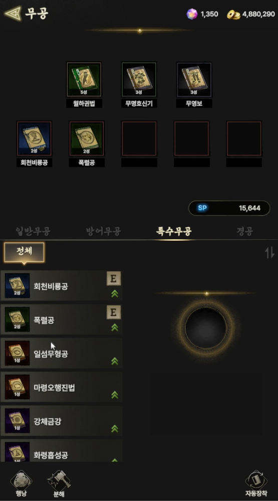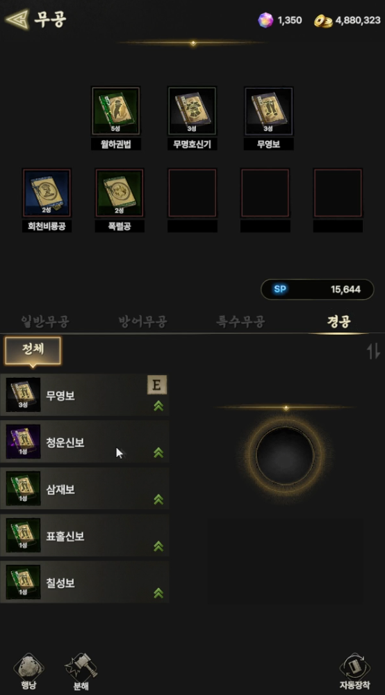 특수무공에서도 2개 (일섬무형공, 마령오행진법), 경공은 아쉽게 하나도 나오지 않았습니다.