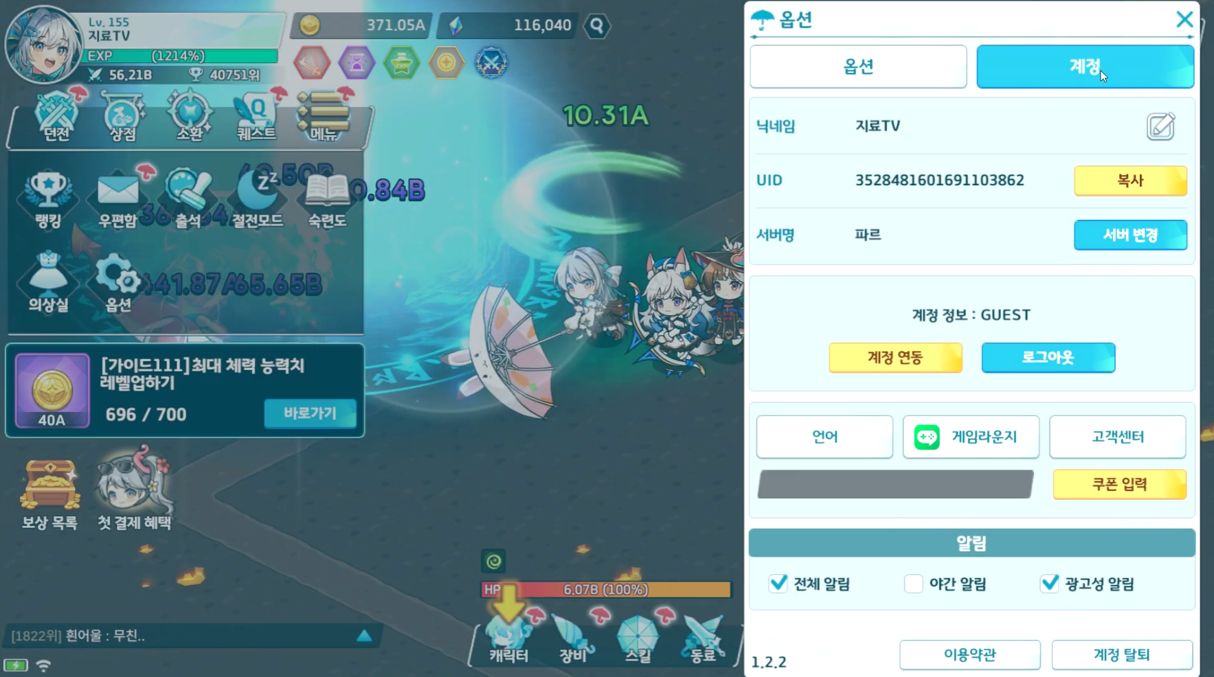 옵션에서 계정쪽으로 이동하면 쿠폰 입력할 수 있는 화면이 보이게 됩니다. 이곳에다가 코드를 입력 후 쿠폰입력 버튼을 눌러주시면 됩니다.