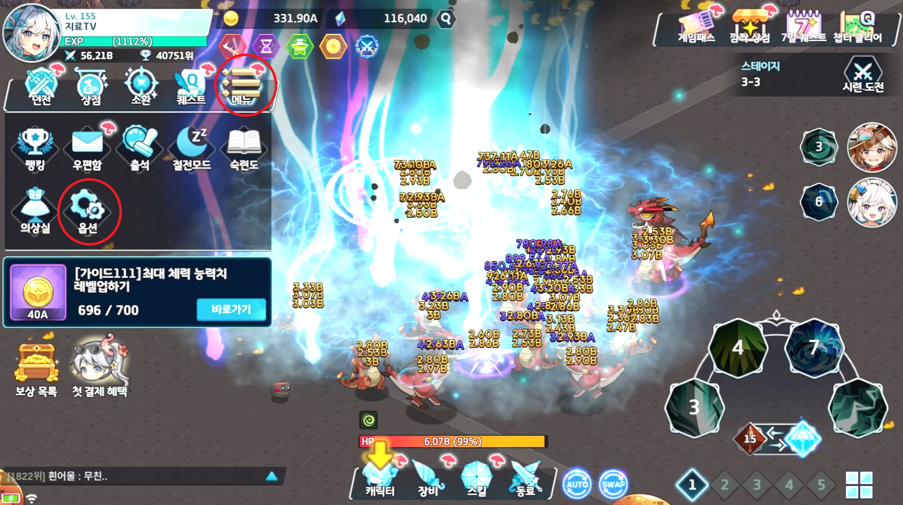 화면에 보이는 메뉴 버튼을 눌러주시면 아래에 옵션 버튼이 나오게 됩니다.