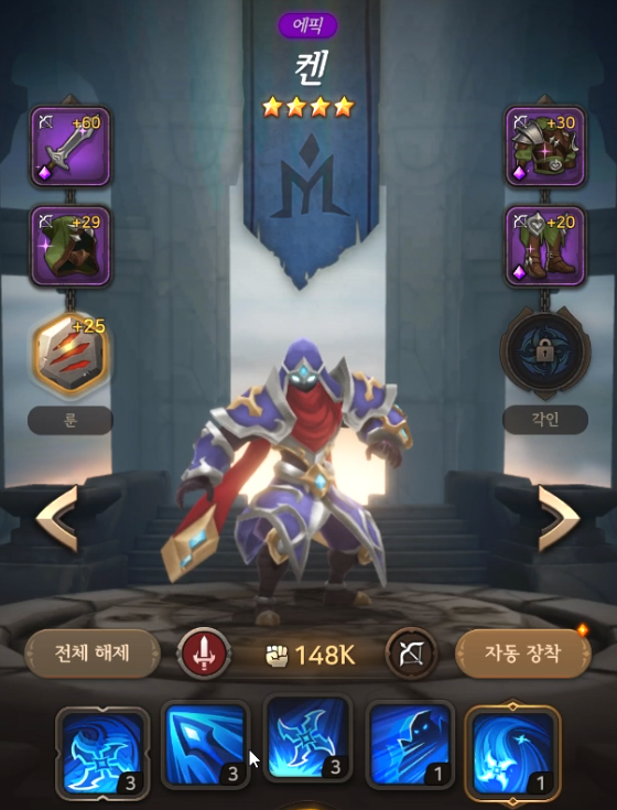 저의 주력 캐릭터이기도 한 켄은 다중 공격에 특화되어 있습니다. 때문에 뭉쳐있는 적을 상대할때 사용하면 효과가 좋습니다. 패시브로 출혈을 가지고 있어서 스킬을 맞추기만 해도 어느정도 딜이 보장됩니다.