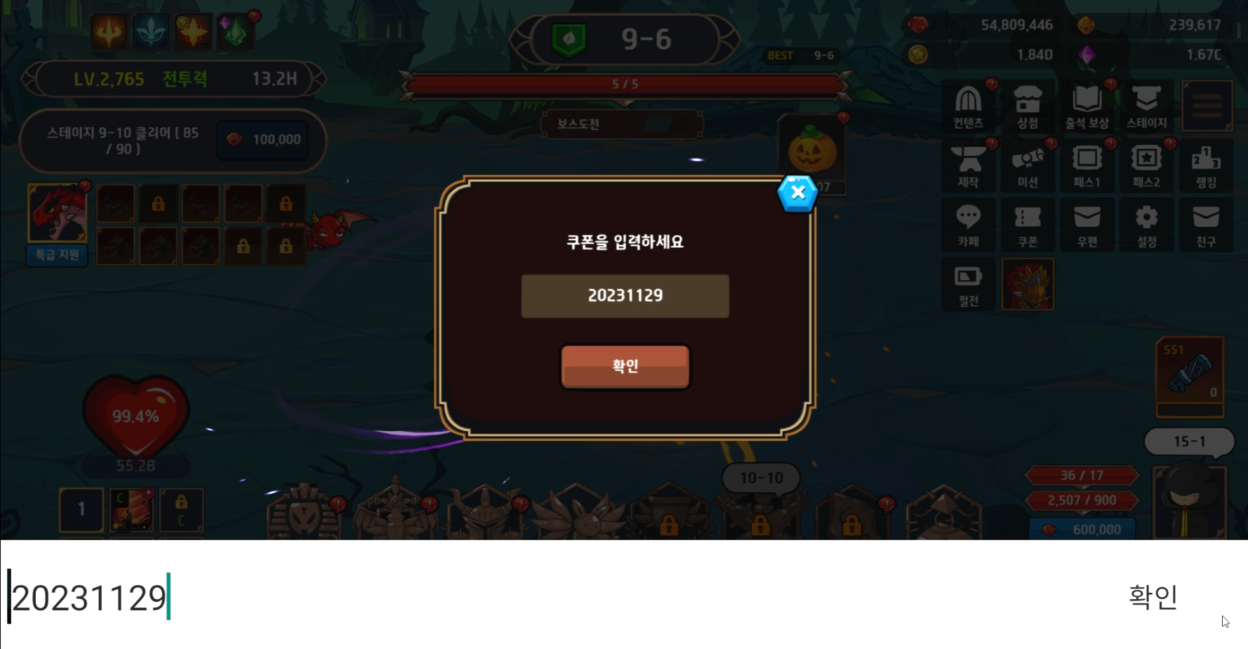 게임을 시작할때 항상 살펴보는게 바로 쿠폰입니다. 게임마다 다르겠지만 발칸 키우기 쿠폰은 꼭 사용하시길 바랍니다. 그 이유는 보상이 너무 커서 장비뽑기를 엄청나게 할 수 있기 때문입니다.