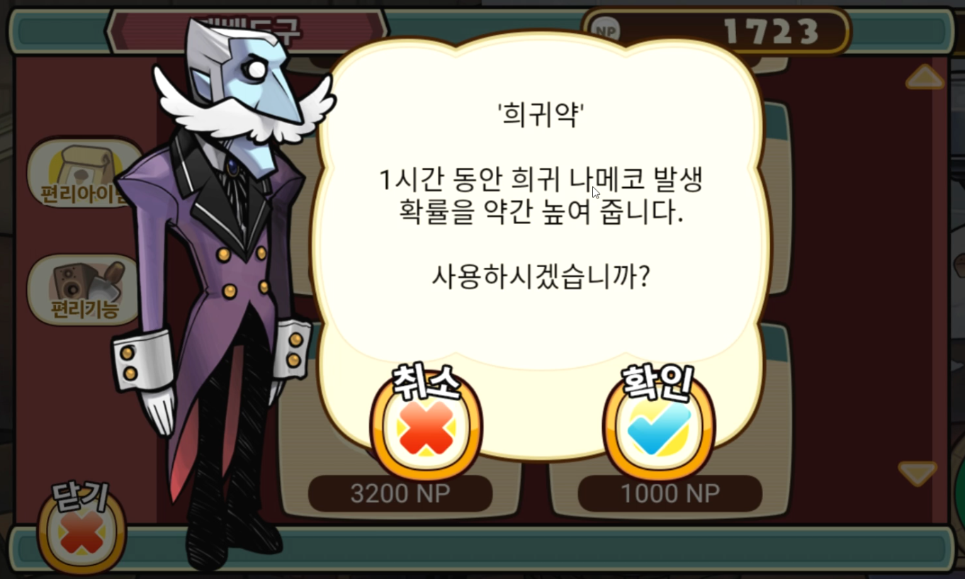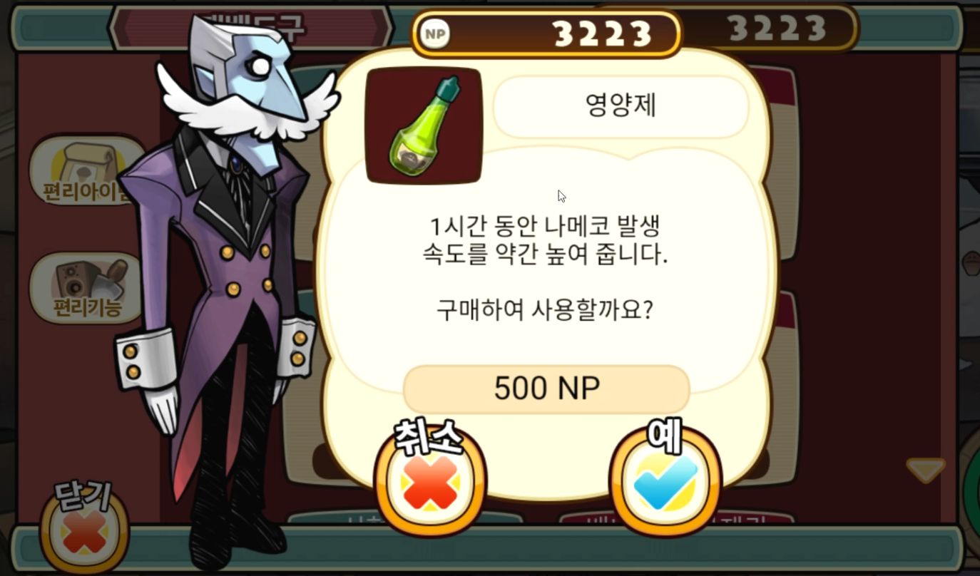비밀도구를 전부 사용했다면 영양제를 사용해 나메코 성장 속도를 더 올려줄 수 있습니다. 영양제는 발생 속도 증가, 희귀약은 희귀 발생 확률을 높여줍니다. 비싼걸수록 더 효율이 높아집니다. 단 이 두가지는 중복 사용이 안된다는점 알아둡시다.