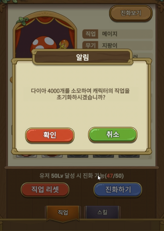 다이아 4000개를 소모해서 언제든 직업을 초기화 시킬 수 있습니다. 하지만 아깝기 때문에 어느정도 평가가 정해진 직업을 선택해서 시작하시는게 좋습니다. 처음 직업은 메이지, 아처가 추천되는데 개인적으로 메이지를 추천드립니다.