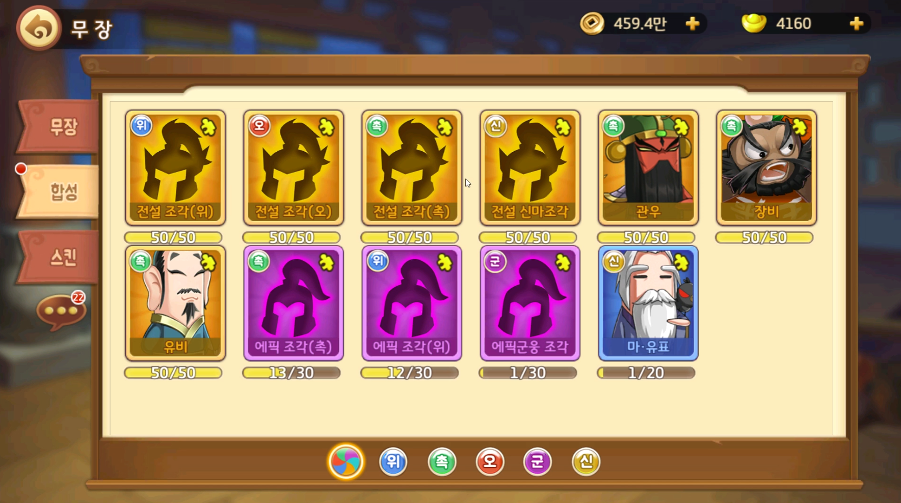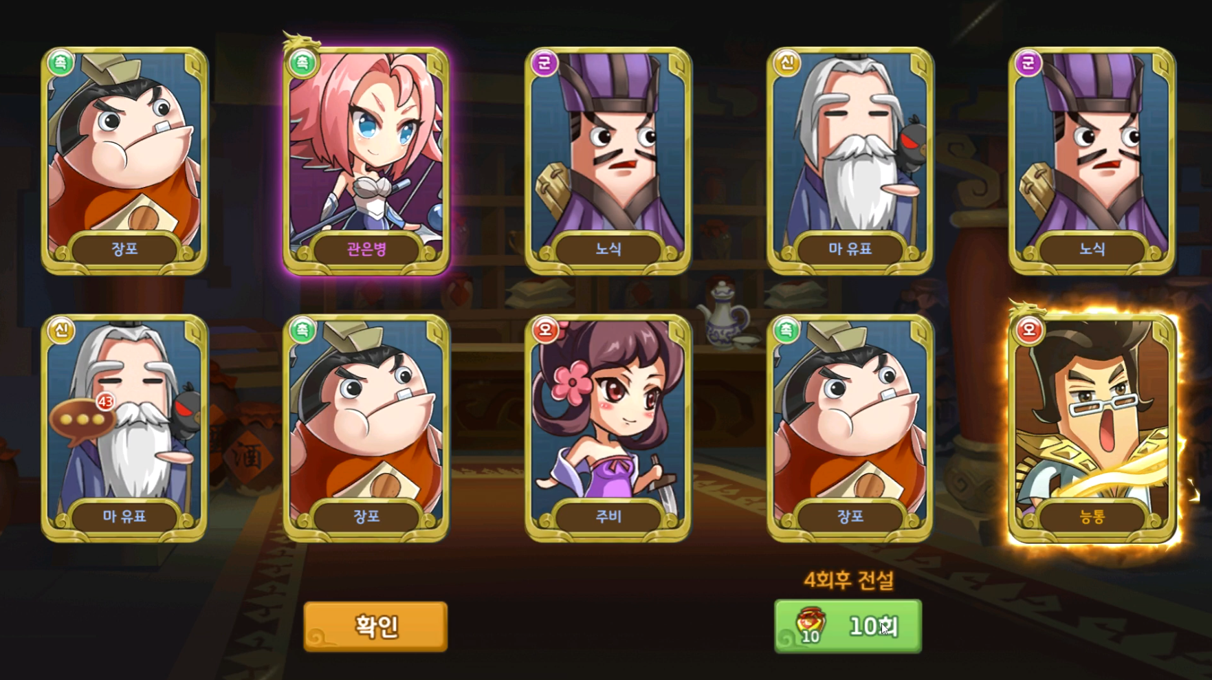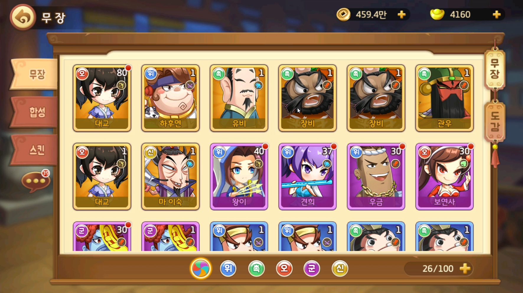 저는 조각 사용으로만 이렇게 얻어줬습니다. 각 장수들을 살펴본 결과 장비는 탱커로써 아주 쓸만하고, 대교도 딜러로 사용하기 좋더라구요. 그래서 이 둘을 주력으로 키워주고 있습니다.