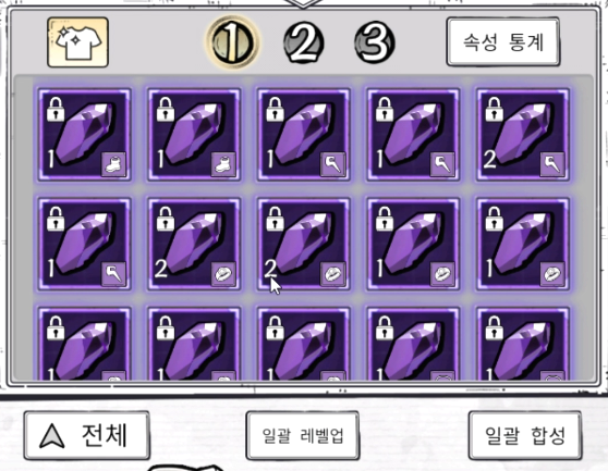 하지만 내가 합성하고 싶지 않은 보석이 있을 수 있는데 이때는 보석 옆에 자물쇠를 눌러 잠가주시면 합성시 선택되지 않습니다. 그러나 같은걸 2개 이상 가지고 있을때는 합성에 포함된다는 부분 알아주세요.
