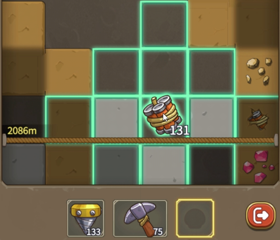 벽을 캐는 방법은 3가지입니다. 기본 곡괭이, 1줄을 전부 파는 드릴, 주변을 전부 폭파하는 폭탄 이 세가지를 이용해서 최대한 깊은 곳까지 파주는게 중요합니다.