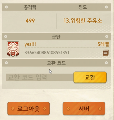 바로 교환 코드를 입력할 수 있는 화면이 나옵니다.