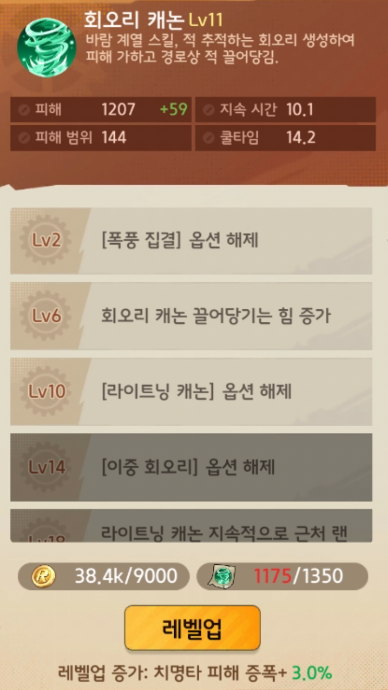 물리계열 스킬로 회오리 캐논처럼 이동하며 적들을 공격하는 범위 공격 스킬입니다. 적을 기절시키는 옵션을 가지고 있으며 빠른 이동을 통해 여러 적들을 공격할 수 있습니다. 또한 속성저항 몬스터를 잡기 위해 물리계열 스킬이 꼭 필요한데 이녀석을 사용해주면 문제가 해결됩니다.