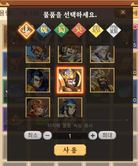 가방에 있는 상자를 사용하면 영웅을 선택해서 얻을 수 있는데 추천되는 장수는 동탁, 화타, 안량입니다. 저는 안량을 선택했는데 그 이유는 군 진영에서 공격력이 아주 높은 장수로 초반에 유용하게 사용할 수 있을 것 같아서 입니다.